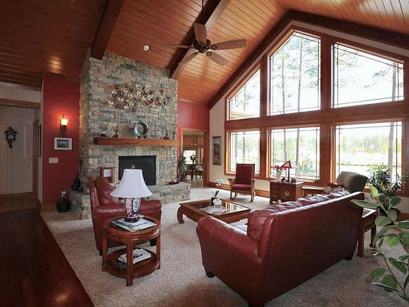 Located on Masters Ridge and boasting one of Mid South's finest views of both golf course and water, this lovely home's design was inspired by architect Frank Lloyd Wright. Custom built in 2008 to capture the lovely surroundings from almost every window, delight in the views of the Arnold Palmer designed golf course, water feature, and clubhouse. The Lloyd Wright influence can further be found in the interior details of its stained wood trimwork, geometrical lines, prairie style windows, stained glass touches, and an imposing stacked stone fireplace with custom made solid wood mantel. Pitched, coffered, trey ceilings, and columns with the same wide wood trim can be found in the living areas. This 4 bedroom home has all its primary living area on the main floor and features a spacious