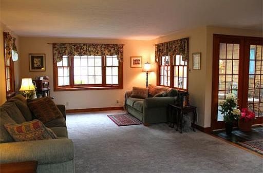 New septic system currently being installed. Charming Cape with newer wing. Spacious entrance foyer (slate flr.) leading into huge living room and lovely 3 season room overlooking private grounds. Delightful kitchen with large dining island and family room with fireplaced wall, book cases & French doors out to porch/deck. Formal dining room & convenient 1st. flr. BR. MBR has bonus room creating lovely suite. Great finished room in basement. Owner's Improvements: New Roof 2002;3 season room roof 2013; New skylites 3 season rm.2014; Furnace 2008; Both baths 2013; Pella windows 1st.flr.2010; 2nd.flr.2013.The house is bright with French glass and skylights & is a wonderful blend of contemp.& N.E.charm. Outstanding value in a highly desirable area and priced to sell.