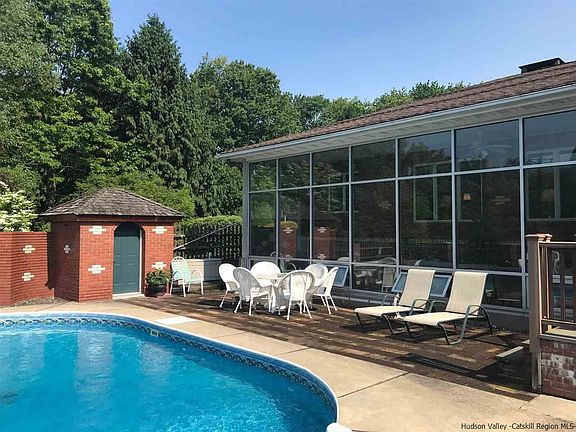 A truly special property, this estate-like ranch is minutes from Stone Ridge center, situated in a private oasis of gardens and meadows, making it close but far. Engineer designed and built to last, the home and grounds have been maintained and loved with the upmost pride of ownership. Enjoy an inviting, spacious floor plan, single level living upstairs with additional living space, bedrooms and bathrooms for everyone downstairs. Ample back deck overlooks the in-ground pool, patio and solarium. Stroll the mature, fenced gardens, through the meadow down to the greater pond with woods, wildlife and row boat dock. Large separate outbuilding/barn has multiple bays, workshop, garden storage and electric. Enjoy turn key as-is, make tasteful touches or renovate to the max. A prime opportunity to live and entertain in desirable Stone Ridge.