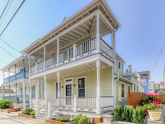 Ocean Grove BEACH home with WOW FACTOR,LOCATION & OCEAN VIEWS! This fabulous home was FULLY RENOVATED 2014!!! This 2nd Beach Block home offers OCEAN VIEWS from 2 fabulous front ROCKING CHAIR PORCHS & also rear PRIVATE NEW fiberglass Balcony and Railings. The attributes of the home: High ceilings 1st,Cathedral 2nd, ANDERSON windows,3 1/2 inch oak plank floors, solid stained white Oak entrance doors, desirable OPEN FLOOR PLAN ,Upscaled Eat In kitchen W/white Cabinetry soft close drawer ,Carrera Marble Counters