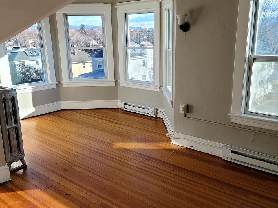 Recently updated large bright 1 bedroom on a quiet dead end street. Hardwood floors through out this third floor apartment. Heat and hot water included. First and last required to move in.