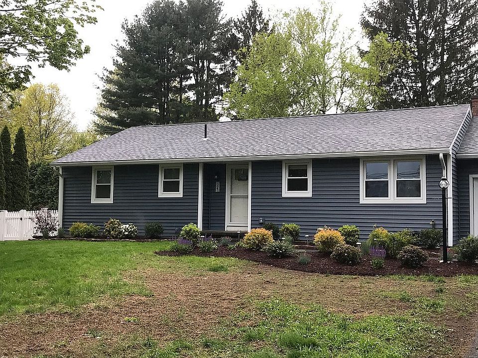 Tucked on an open lot with a spacious back yard is this light, bright cheery Ranch style home. Live conveniently on one floor with an open living room/dining area/kitchen - hardwood floors throughout. 4 zone oil heat a plus! 2 car attached garage a must, plus garden shed. Minutes to major routes, schools and shopping - A delightful place to call home at a price you can afford!