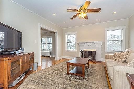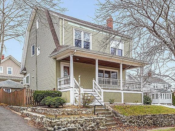 Perched on a corner lot, this Colonial with a farmers porch, rear deck & two car garage is ready for its next owner. Bundle up and watch the snow fall from your front porch this winter with a warm beverage of your choice. Next summer you will appreciate your central air and a backyard and deck perfect for hosting a BBQ. Benefit from a driveway that provides direct access to the rear entrance of the house. Eat in kitchen, large dining room with built-in china cabinet & sliding doors to rear deck, living room with working fireplace. Hardwood floors throughout, replacement windows. Four bedrooms on the second floor, all with closets. This neighborhood (with its own Facebook Page announcing block parties, cookie swaps, and other neighborly information) is a hidden gem, close to vibrant downtown Melrose, the library and the Fells Reservation. Easy access to highways, commuter rail, and Oak Grove Station. Open houses Friday 11/16 5:30 - 7:00, Saturday 11:30 - 1:00 and Sunday 12:30 - 2:00.
