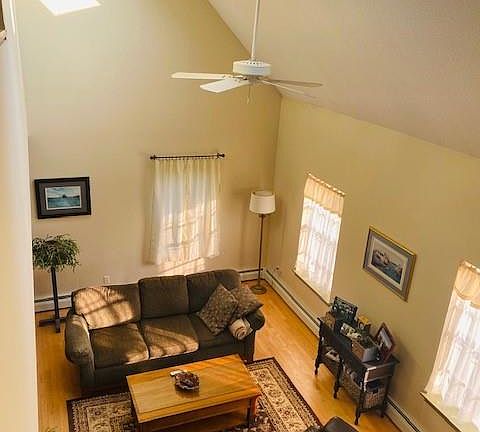BEAUTIFUL CAPE w/ VAULTED CEILING, SKYLIGHTS and HARDWOOD Floors sits on a cul de sac on the RI LINE! 1 st FLOOR bedroom and a full bathroom w/ NEW VANITY and LAUNDRY area. APPLIANCED kitchen w/ breakfast bar and dining area w/ HARDWOOD FLOOR has slider that leads to LARGE deck. PRIVATE back yard surrounded by STONEWALLS and fencing. HARDWOOD STAIRS leads to 2 more bedrooms and another FULL bathroom w/ NEW VANITY. CITY WATER & SEWER and has a PAVED DRIVEWAY w/ OVERSIZED 2 CAR GARAGE. LARGE BASEMENT for more storage. ALMOST 1600 sq ft and built in 1997.