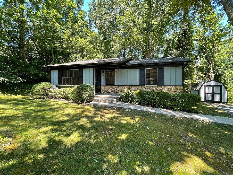 Discover the charm of 24 Melton Drive, a beautifully remodeled three-bedroom, one-bathroom home nestled at the end of a peaceful cul-de-sac in the highly sought-after Haw Creek neighborhood of East Asheville. This classic ranch-style home offers the perfect blend of comfort and style. Step inside to find a thoughtfully updated interior with an inviting floor plan. The heart of the home is the modern kitchen, featuring gleaming quartz countertops, elegant new cabinetry, and stainless-steel appliances, including an electric range, built-in microwave, refrigerator, and dishwasher. Adjacent to the kitchen, the convenient laundry room offers washer and dryer connections. Relax and unwind in the spacious, light-filled bedrooms or enjoy the beautifully renovated bathroom, complete with quartz countertops and contemporary cabinetry. The home's screened-in back porch is an ideal spot to savor the serene wooded views and outdoor breezes. Stay comfortable year-round with central heating and air conditioning. Outside, you'll find a handy storage shed at the end of the driveway, perfect for keeping your lawn equipment or extra belongings organized. This home offers the perfect combination of tranquility and modern convenience. Tenant is responsible for all utilities. Please note: this property is not pet-friendly and does not accept co-signers.