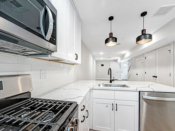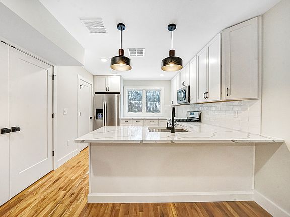 Welcome to 22-24 Merritt Ave! Located on a quiet, charming street in desirable Woodbridge, this beautiful home is just minutes from the Merritt Parkway and Downtown Yale. Enjoy the convenience of nearby shopping, public transportation, and even Starbucks all within walking distance. Each unit offers a bright and spacious open-concept layout with gleaming oak hardwood floors throughout. The kitchen is fully equipped with stainless steel appliances and features elegant white quartz countertops. A private laundry center is located in-unit, along with generous storage space in the attached one-car garage. Upstairs, you'll find a modern full bathroom and two spacious bedrooms. The third floor boasts a stunning primary suite with an en suite bath and walk-in closet your perfect retreat. Tenants are responsible for all utilities.
