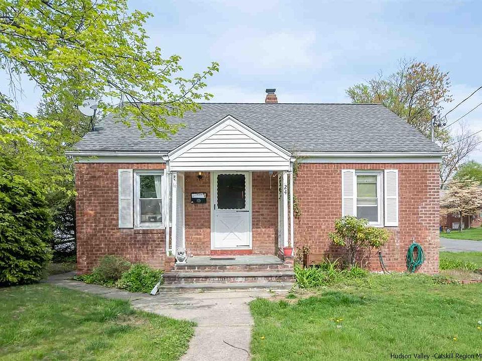 Affordable in Kingston? YES! Charming brick cape with 2 bedrooms and 1 bath on a level corner lot. Walk to Edson Elementary and the uptown Stockade District. Beautiful hardwood floors throughout first floor. Walk up attic is currently used as a 3rd bedroom but could also be a fantastic office space or playroom. Full basement has storage, laundry and built-in workbenches. This little gem is going to make someone VERY happy! Schedule a showing today!