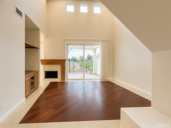 Welcome to this beautifully maintained California Renaissance home offering three bedrooms, three bathrooms, a two car attached garage, and approximately 1640 square feet of light filled living space with truly sweeping panoramic views. Step inside to an inviting entry that immediately feels bright and open. Just off the entry is a versatile enclosed den that works perfectly as a home office, guest room, or third bedroom. A full downstairs bathroom sits nearby and features an updated vanity and a walk in shower with a clean frameless glass enclosure. The main living room opens beautifully as you move further in, with soaring two story ceilings and walls of windows that bring in natural light throughout the day. The dual sided fireplace anchors the space and adds warmth and character. Around the corner is the kitchen which has rich cherry cabinetry, KitchenAid black stainless appliances, and a recently updated refrigerator. The kitchen flows easily into the dining room which enjoys views of the surrounding hills. Sliding doors lead to the covered patio and outdoor area which offer stone hardscape, mature landscaping, and beautiful open space behind the home. This is a wonderful spot for morning coffee or evening gatherings. Also on the main level is a separate laundry room with washer and dryer included and built in cabinetry. Upstairs you will find an airy loft that is ideal for an additional work area or a quiet reading space. The ensuite second bedroom has its own full bathroom and a walk in closet with built in organizers. The primary suite sits at the back of the home and features vaulted ceilings, two closets including a walk in, and a private balcony that takes in the incredible views. The primary bathroom offers dual sinks, a large vanity, a separate soaking tub, and a walk in shower finished in marble with a frameless glass enclosure. The attached two car garage includes extra storage and an epoxy coated floor. Notable upgrades include PEX repiping, newer HVAC, dual glazed windows, a whole house water filtration system, and thoughtful lighting updates throughout. The California Renaissance community features a resort style pool and spa and beautifully maintained greenbelts. The location is one of the most convenient in Aliso Viejo with close proximity to the 73 toll road, the 133 scenic route to Laguna Beach, highly regarded schools, hiking and biking trails, and the Aliso Viejo Town Center with shopping, dining, and entertainment.