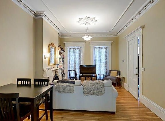 Private outdoor space. In-unit washer & dryer! Parlor level perfection on Milford Street! Walk out the door of this historic Victorian brick building and have access to the best that the South End offers! This bright 1 bed, 1 bathroom features: in-unit laundry, hardwood floors, 2 decorative fireplaces, 11 foot ceilings, original detail, tiled bathroom shower and a private deck. Highway and public transportation minutes away. If your standards require quality space and a premier location, you should see this. AVAILABLE SEPTEMBER 1st. PHOTOS FROM PREVIOUS TENANT VIRTUAL TOUR AVAILABLE UPON REQUEST