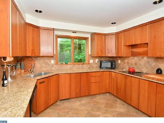 Magical oasis! Nestled on a private, wooded lot, enjoying enchanted views from full-length windows, each room seems awash in sunlight. Well maintained & pristine, this home provides all the attributes a discriminating buyer desires. Beautiful hardwood floors, sky lights, & neutral paint throughout provide a modern atmosphere & a contemporary paradise. The updated kitchen is every chef's dream w/plenty of granite countertops, custom cherry cabinets, flat top range, double wall oven, recessed lighting, & opens to the dining room. A beautiful double sided floor to ceiling stone fireplace with wood mantle separates the dining room from the living area. Upstairs you will find the master suite that looks over into the living room & features a full bath w/skylight & walk-in closet. Two additional bedrooms & shared hall bath w/laundry complete upper level. Unfinished w/o basement is ready for your finishing touches. Large back deck overlooking private back yard. Happiness lives here!