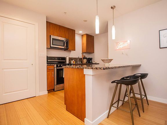 Experience upscale city living in this tastefully furnished 2-bedroom, 2-bath apartment, located in a luxury elevator building in the heart of Boston's lively Fenway neighborhood. Surrounded by top universities, the Longwood Medical Area, museums, and cultural landmarks, it's a prime spot for both business and leisure stays. The open-concept design includes a modern kitchen with cherry cabinets, granite countertops, stainless steel appliances, and a breakfast bar. Bamboo hardwood floors, oversized windows, and plenty of natural light add to the contemporary ambiance. The spacious primary suite features a king-size bed, walk-in closet, and private en-suite bathroom, while the second bedroom offers a queen-size bed and generous closet space. Other amenities include in-unit laundry and elegant tile bathrooms. Pets are considered on a case-by-case basis. There is an additional $150 pet cleaning fee per pet as the apartment has to go through a special cleaning after your stay. Guests bringing pets will be required to sign a pet contract. Parking is very difficult to find and expensive. We have a few spaces that are 1 mile from the building. If you need parking, please let us know ahead of time. Parking is on a first-come, first-serve basis and has to be reserved ahead of time to guarantee a space. Pack n' Play and high-top chair available upon request for $10 per night. Steps to public transportation, shops, restaurants, cafes, and nightlife of Kenmore Square. A short stroll to Newbury Street and Back Bay. 16 Miner Street is a three-minute walk from the D Green Line D at the Fenway stop. Key access is provided via a secure lockbox located a 3-minute walk from the building. There is a $150 lost key fee. All guests must maintain a primary residence elsewhere and agree to abide by house rules, maximum occupancy, and payment terms. No subletting or unauthorized guests.
