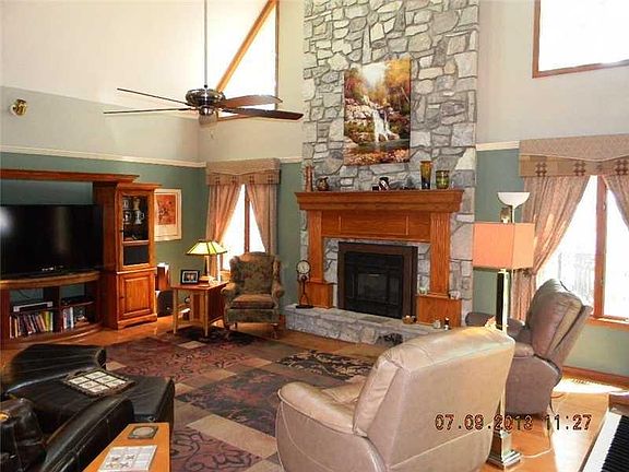 Open floor plan w/ vaulted ceiling with amazing stone gas log fireplace, 2577 square feet w/ 4 bedrooms, 2.5 bathrooms, oak staircase leading to 4th bedroom, now being used as a game room complete with a pool table, expansive back deck w/ wrought iron railings including hot tub & great view, open kitchen w/ butcher block counter tops, lots of cabinet space, pull out pantry & smooth top downdraft, large master suite boast large walk-in shower + sunroom, extra storage, workshop, new exterior paint, interior paint garage, new hardwood floors & new carpet in bedrooms in 2016. 2 car attached garage.