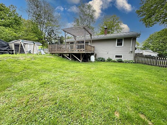 An amazing opportunity to purchase a beautiful ranch on a nice corner lot on a dead-end street in town and close to amenities! One-level living with hardwood flooring which includes a spacious living room, open concept and eat-in kitchen, three bedrooms and a full bathroom with jetted tub. The sliding glass doors lead to the large back deck overlooking the fenced-in back yard. Private setting which is perfect for relaxing or entertaining. Full, finished basement with family room and an updated half bath. Additional room, storage space, utility area, utility sink, and laundry area with walk-out access. Ample storage space, metal roof, gutter system, two sheds, great landscaping, and a paved driveway on both Mitchell Street and Ashmount Street. This home has it all and is waiting for you to make it your very own!