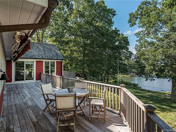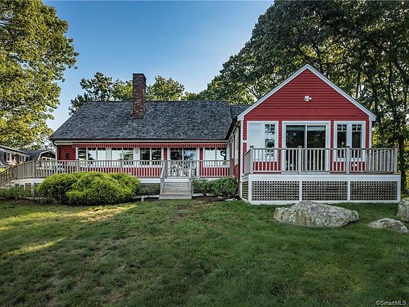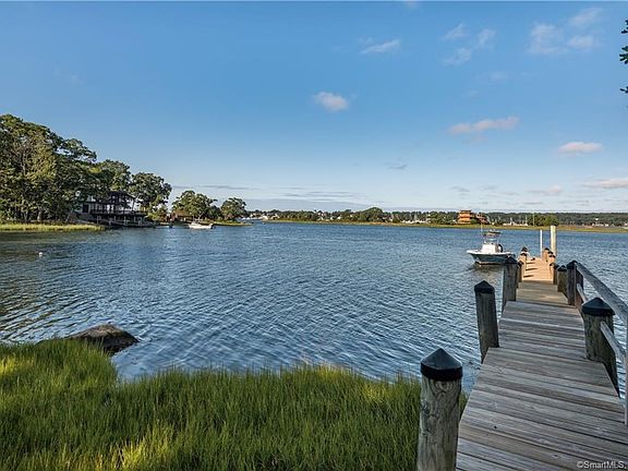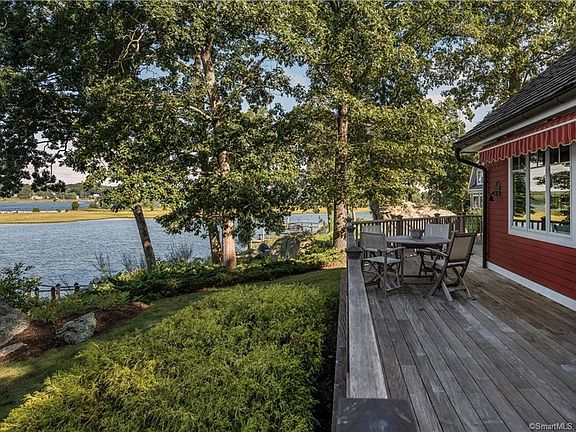 Enjoy owned waterfront, dock, spectacular views and golden sunsets from this thoughtfully renovated expanded Cape within private association of Mason's Island. The open living space is rimmed with waterside windows and doors leading to generous IPE deck for outdoor enjoyment. Newer kitchen has high end cabinetry, Viking range and SubZero refrigerator...and a cozy, view filled eating area. Living room and dining room share a fireplace wall, with access to deck area from both. Private first floor master suite is complete with two walk-in closets, access to deck, and offers identical views as living space. A first floor den, lined with built-ins could serve as an extra guest space. Upstairs space has two large bedrooms, and one smaller bedroom....and a whole wall of closet space in a hallway The finished two car garage has an adjoining heated workshop or office space. All this and more just minutes from beautiful ocean beaches,restaurants and village shopping