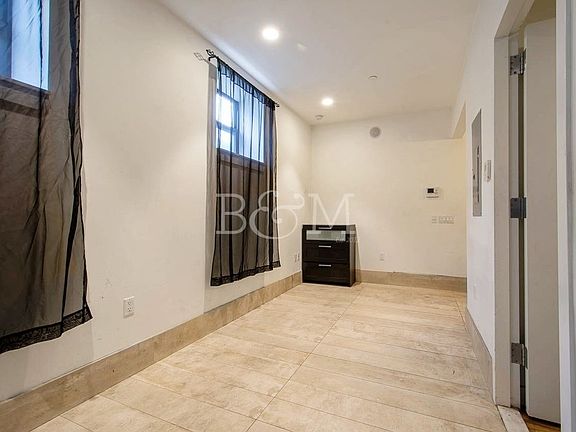 LOW FEE One of a kind modern unit in prime Williamsburg adjacent to Greenpoint. The unit has been fully restored with a brand new kitchen and bath, complete with designer finishes. Bedroom fits a queen sized bed plus furniture. The unit also features built in blue tooth speakers and central AC and heat. Tenant has left behind two large closets for your use or they can be removed. The unit resides on the first floor facing the back of the building, making it exclusive and quiet The building is a renovated Catholic school that maintains all of its old world charms, while enjoying a modern residential redesign. High end designer finishes and fixtures, spaciously high ceilings give every apartment a luxury feel. Apartments range from Studio to Four Bedrooms. The building offers a fully outfitted gym, with free weights, cable machines, and cardio equipment. Yoga room for the aspiring Yogi. Beautiful common area with pool table, TV's and leather sofa's allow for maximum relaxation whether at home or at the resident's lounge. The roof deck enjoys gorgeous Manhattan views of the Financial District past the Empire State Building. Laundry in building.