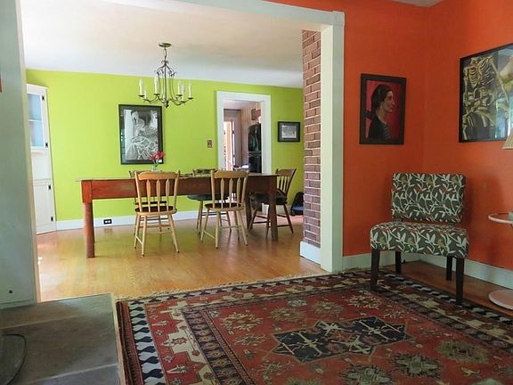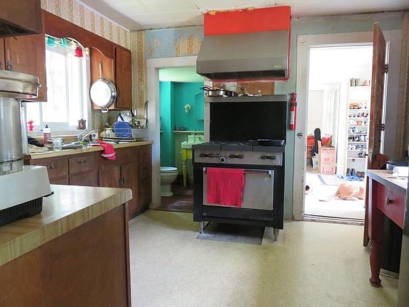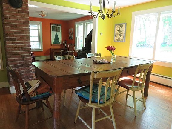 Charm abounds in this farmhouse on 3 acres close to the town center & art co-op. Lovingly owned, this home eludes much character. Recent remodel (needing finishing touches) is a FR or 1st fl. BR option w/full bath. Newly constructed side entry is great for kicking off the outerwear. Enter the cozy kitchen probably needing a remodel. Another full bath w/claw foot tub comes right off the kitchen. The feeling of yesteryear comes over you as you walk into the large DR w/built-in china cabinet. There is a separate office & LR w/wood stove completing the 1st Floor. Upstairs are 3 bedrooms w/old pine floors (1 has closet).The seller says this home is fully insulated w/all but 2 double pane windows. The outbuildings need some love but there is a 1 car garage, shed & chicken coup. Front porch w/louvered windows is a great place to unwind. Lots of sun in the yard, perfect for gardening. Walk to the Leverett art co-op or pond to paddle around. High Speed Internet!!