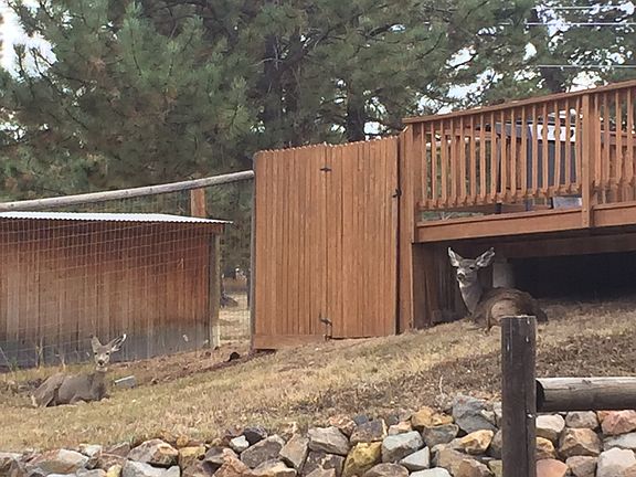 FSBO - Only 15 miles west of Woodland Park. This is a cozy, mountain home on 1.9 acres of beautiful mature trees. New stucco last year. Plenty of room for the family in this 1,900+ sq ft home with 3 bedrooms and 3 baths. Oversized 2 car garage and a brand new Tuff Shed. Back deck is the whole length of the house and provides plenty of entertaining space. Large dog run. Finished basement could be used for game room or additional living space. Includes bar, full bath, Murphy bed, and a kitchenette. House is located on a corner lot and is walking distance to the bus stop. Heating is natural gas and you have your own water well so no water bill! Get it now at this lower price before it's listed with realtor.