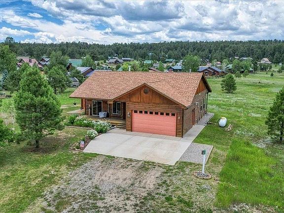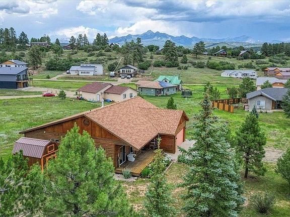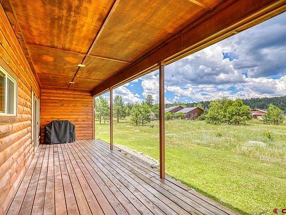 Meticulously maintained 3 BR 2 BA 2 car garage log sided home just steps from Hatcher Lake and trails into the National Forest. Split floor plan with primary bedroom and bath on one side, 2 bedrooms and bath on the other side. Beautiful hickory hardwood floors in the main living space, carpet in the bedrooms, and tile in kitchen and baths. Cozy gas fireplace in the living room. Covered decks on the front and back of house are spacious and comfortable for outdoor living. On a cul-de-sac, this home is quiet with no traffic noise. Wildlife including deer and many birds frequent the area. San Juan National Forest access is just steps away for hiking, cross country skiing, snowmobiling, ATV riding, and much more. Fishing privileges available on the area lakes and the full fitness center. 10 minute drive to shopping, restaurants, and local hospital. 40 minute drive to Wolf Creek Ski Area with the "most snow in Colorado", 60 minutes to commercial air service in Durango.
