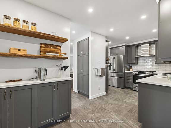 Impeccable and completely renovated, this home is move-in ready and filled with quality updates. The main level showcases engineered hardwood floors and a modern 2020 kitchen with Frigidaire Professional Series fridge (with extra deli drawer), gas stove, and dishwasher. Upstairs youll find a newly renovated bathroom with shower, while the finished lower level offers a luxurious retreat with walk-in shower, heated floors (including shower), stand-alone tub, and convenient stackable washer and dryer. Major updates provide peace of mind, including a 50-year steel roof, new furnace and A/C (2021), additional insulation, and the comfort of a gas fireplace and gas stove that both work during power outages. The outdoor space is equally impressive, featuring a new fence, BBQ hut with natural gas hookup, stone patio with fire pit, and a 7x7 vinyl shed for storage. Spacious rooms throughout ensure comfort for the whole family, while the fully permitted and beautifully finished 3-season room stands out as the highlight of the home, offering extra living space to enjoy most of the year. Truly a home that blends style, comfort, and function in every detail.