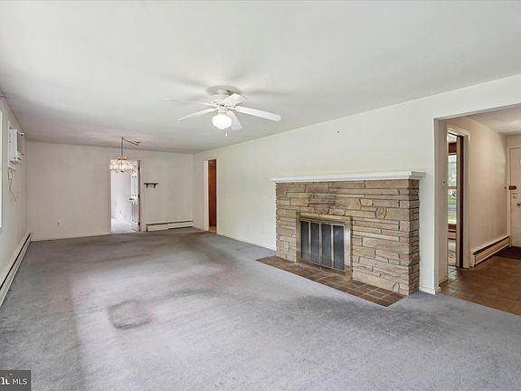 Easy living awaits in this spacious rancher on a fabulous lot! Located on a quiet, tree lined street in Montgomery Township. this home offers an open floorplan perfect for entertaining with its large living room/dining room combination. A stone two-sided, wood burning fireplace is shared by the living room and the breakfast room creating a warm, inviting ambience in each area. The kitchen offers wood cabinetry, dishwasher, double sink, built-in table, and pantry. Hardwood floors throughout the majority of the home. New heater installed in 2022 with two zones. Four bedrooms and two and a half bathrooms provide plenty of room to spread out and each bedroom has a ceiling fan and generous closet space. Oversized two car garage and large basement. With fabulous natural light and windows overlooking yard spaces that seem to bring the outside in, this home presents an excellent opportunity for someone to add their personal touches and updates to start this home's next chapter. The property is being sold 'As Is' and the seller will not make any repairs or offer any credits. Close to all major arteries, shopping and public transportation.