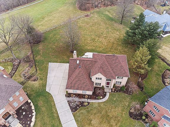 All-brick custom-built Londonbury home with a .7-acre level lot on a cul-de-sac adjacent to the 18th fairway in the Hickory Heights golf community. It features a dramatic 2-story entry with a Palladium window, den, sunken family room, powder room, dining room, living room and large eat-in kitchen with quartz counter tops and island, solid oak cabinets and a walk-in pantry on the first floor. The kitchen door leads to a tri-level finished deck with an electric retractable awning. Second floor master suite has a tray ceiling, bath with double--bowl sinks, enclosed toilet, and walk-in ceramic tile shower. The master bedroom has 2 closets and a walk-in closet with access to a walk-in attic. Also, there are 3 additional bedrooms, a hall bath with bathtub/shower and a laundry on the second level. The lower level has a finished game room accessible with stairs from both the first floor and the 3-car garage, a small kitchenette, a powder room, a large storage area and an exit door to a level backyard.