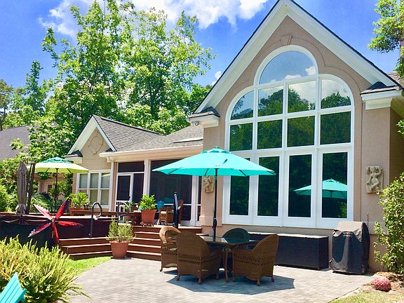 Enjoy "Resort Style" living in this beautifully renovated home! 24 Myrtlewood is stunning inside and out! It offers a wonderful open floor plan with Formal Dining Room open to Formal Living! There is a beautfully renovated kitchen with granite countertops, stainless appliances and loads of seating space at the bartop and the breakfast area, which opens to a Family Room with gorgeous Paladium windows that let the sun shine in! The bedroom arrangement is a split with an elegant master with sitting area on one side, and two guest suites on the other side of the home with a Jack&Jill bath in between! Upstairs offers a bedroom, full bath and bonus room! Total of 4 BR and 3.5 baths! Enjoy all that Springtime in the South has to offers from the sprawling rear lawn complete with several cozy decks, patios, fire pit area and porches complete with an 8 person hot tub all overlooking lushly landscaped lawns, large lagoon and golf views! Newer roof & loads of upgrades! This home is a showstopper!