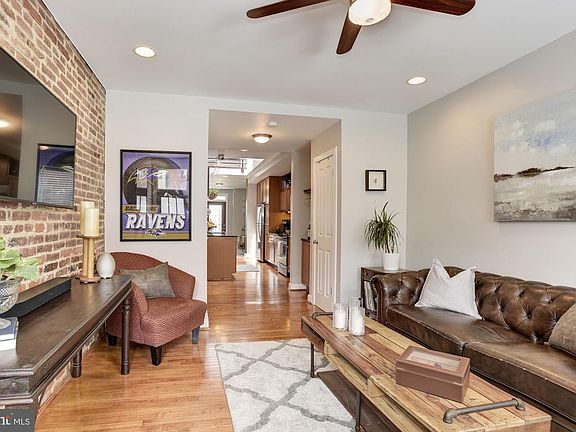 Situated in the popular Patterson Park Neighborhood, this Decker Avenue home is bright and inviting. Main level features include hardwood floors, half bath, expansive kitchen with atrium style ceiling and large dining area leading to rear patio. The exposed brick wall highlights the architectural details including floating staircase and custom iron railings. Upper level offers two bedrooms, full bath with whirlpool tub and separate shower, dual skylights and Juliet balcony in rear. Lower level has a bedroom / family room, full bath, laundry and storage rooms. Meticulously updated and maintained. Turn-key, make it yours!