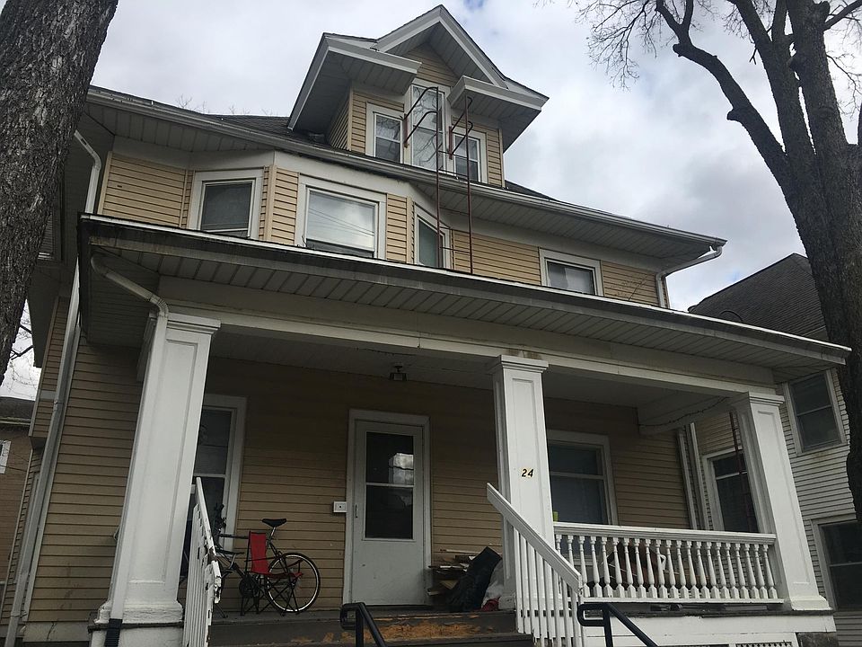6 bedroom house with 4 kitchens. Has a lot of living space and large bedrooms. 1 block from downtown and a couple blocks from campus. 360 day lease.