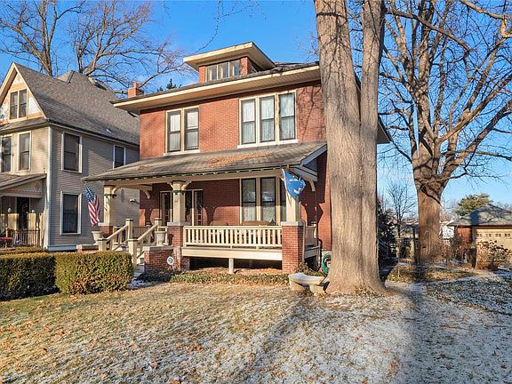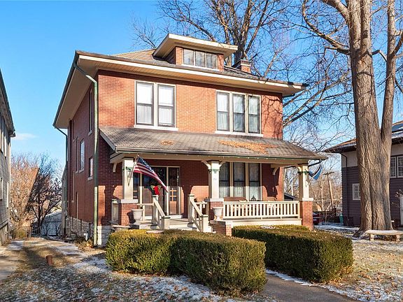 Step into a timeless masterpiece with this Circa 1910 American Foursquare gem. Enter into a breathtaking foyer with handcrafted woodwork, leaded glass, open staircase that whispers tales of a bygone era. The living room boasts box beamed ceilings, a gas fireplace, pocket doors and the original hardwood floors. Enter the dining room with a dazzling chandelier and original crown molding. The heart of this home lies in its beautifully custom kitchen with stainless steel appliances, marble floors, and granite countertops. A coffee and wine bar add a touch of luxury, making this space both stylish and functional. A cozy family room complete with a custom fireplace (built with an old ornate brass piano), wood ceilings, and built-in bookshelves. Venture upstairs to discover four spacious bedrooms and a full bath. Partially finished basement providing ample space for various activities and hobbies. Outside, the enchanting backyard invites you to unwind in the shade of a pergola.