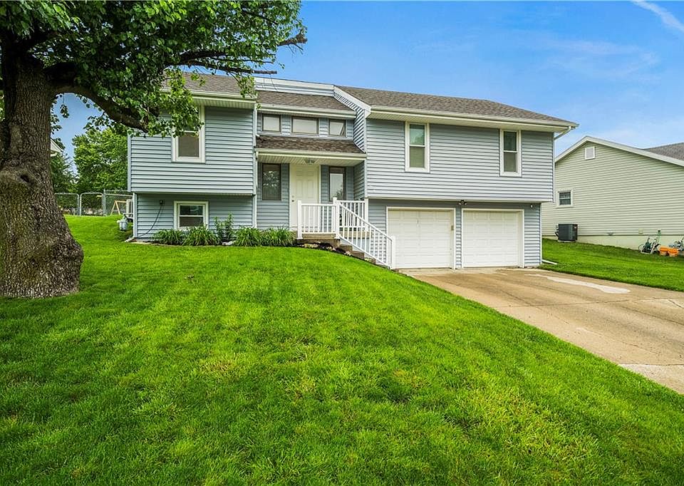 Seller is offering a $3000 kitchen remodel allowance with an acceptable offer via seller paid closing costs so you can create your dream kitchen! Don't miss the chance to own this great home in the Staley School District within walking distance to park with play area and walking trail! This home has brand new carpet, luxury vinyl plank and all new interior paint and updated light fixtures.  Enjoy the maintenance free exterior with vinyl siding and vinyl windows. You will love the spacious great room with vaulted ceilings and separate dining room. Great rec space in the finished basement with a family room plus office or potential 4th bedroom and bathroom.  Large fenced yard plus concrete pad for future shed or perfect for kiddie pool this summer! Close to new and upcoming Metro North Crossing; a dining and shopping area in development. Roof replaced in 2022 and new A/C coil in 2023. House wired for networking and exterior cameras.  Please note window on order for master bedroom to being installed prior to closing. Fun extras:  New touchless kitchen faucet, Wired networking connecting both floors, WIFI capable garage door openers and thermostat plus new bathroom faucets.