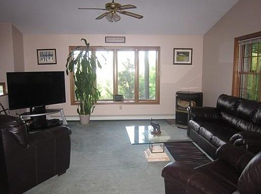 PRIVACY AND VIEW come with this 3 bedroom newer home with OPEN FLOOR PLAN AND 2.51 acres. Pretty stone walls and 2 car HEATED GARAGE WITH A 5500 W generator AND a 2 car carport and shed. Gorgeous kitchen with cathedral ceilings and kitchen island with all appliances to remain (about 3 years old) including washer and dryer. Dining area with sliders to large wrap around deck overlooking a beautiful view!!! Kitchen and dining area is open to the large living room with cathedral ceilings and bow window with pellet stove to heat the whole house! Lower level has a bedroom (or family room) with 1/2 bath and a laundry room. CENTRAL AIR! Seller relocating....make an offer today! Only minutes to Northampton. Near Night View Dam! Comcast internet and TV ! Deck is wired for a hot tub. Title V passed!
