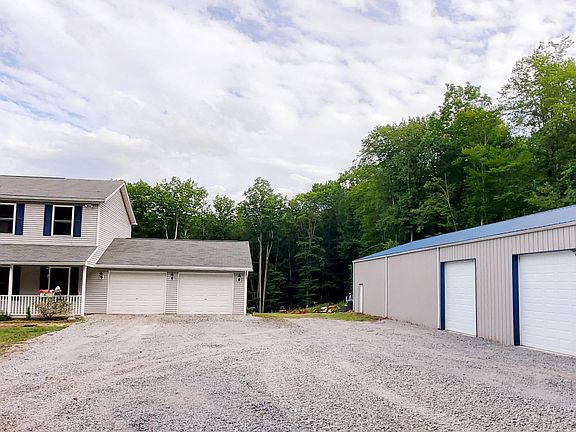 STATELY COLONIAL-6+ PRIVATE ACRES-2400 SF GARAGE- Spacious 4 BR, 2.5 bath, 2 story colonial. Located only minutes to downtown Honesdale. This home features living room, family room w/propane fireplace, kitchen with SS appliances, dining area, laundry room with washer/dryer and 1/2 bath. Attached 2 car garage. Deck and covered porch. Finished lower level features a ''man cave'' complete with air hockey and pool tables. Property has 2 parcels with separate deeds. Home and garage are on 1 parcel. Other features include central air, wood furnace connected to forced hot air system, pellet stove, 6 acre wireless dog fence, cleared and level 25' X 45' pad for pool behind home, and huge 30 x 80 detached garage.