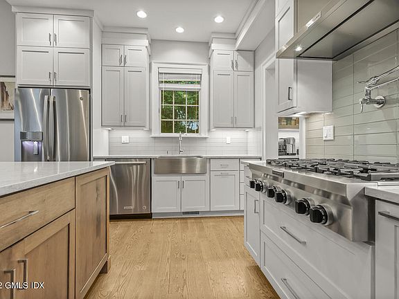 Fabulous 2017 built 5 BR 5.5BA Riverside home! It features a terrific kitchen/great room ideal for entertaining. A huge island w quartz counters + hidden storage, 6 burner gas cooking, double ovens, butler's pantry and adj dining room set the stage for those family gatherings. French doors off the great room open to a bluestone terrace, outdoor fireplace, hot tub and fully fenced backyard. The 1st floor primary suite boasts a luxury bath w large rain shower and radiant heated floors. A 2nd primary suite, 2 more beds + 1 bath round out the second floor. 3rd floor has 1 bed or office. Walk-out LL w high ceilings features a family/play room and gaming area. Two laundry rooms. Close to Starbucks and grocery.
