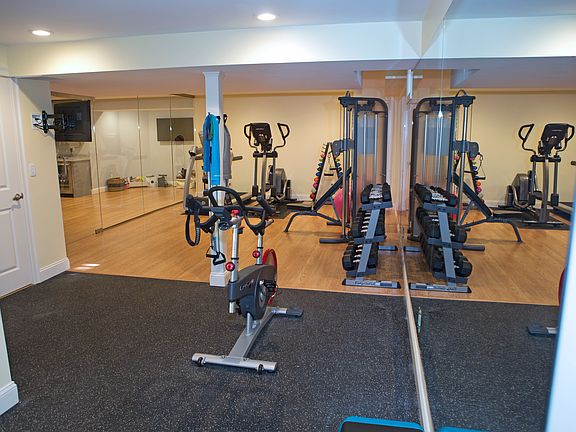 Stunning design and curb appeal galore define this young, 'like-new' grand Colonial you will love coming home to. Quality craftsmanship and great attention to detail shines at every turn. The stunning kitchen is guaranteed to inspire your inner chef with an open floor plan, high-end stainless steel appliances, granite countertops, an oversized breakfast bar island and informal dining area flowing seamlessly to the open plan family room with gas fireplace. Prepare to be amazed in the spacious master suite full of natural light with a vaulted ceiling, oversized walk-in closet and spa bathroom with cathedral ceiling, dual vanities, beautifully tiled shower with glass door and separate tub. Entertain on the finished third level with a recreation room, home theater, and wet bar. The lower level continues to impress with a professional gym and sauna. Imagine summer nights on the deck with the outdoor TV, hot tub, and a bottle of red from your very own wine cellar. Dreams really do come true!