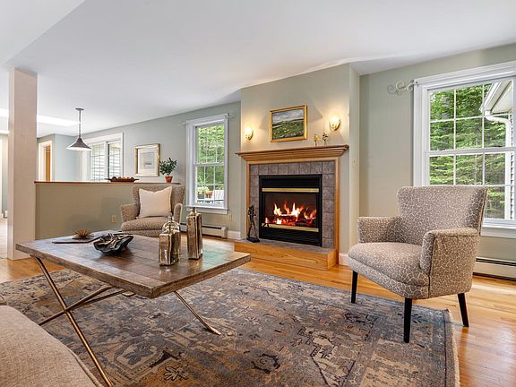 Nestled at the end of a peaceful dead-end street, this custom-designed executive ranch home in Falmouth offers both tranquility and convenience. Built by Hildreth and White in 2000, this one-owner gem combines thoughtful design with elegant features, creating a perfect sanctuary not far from the bustling city of Portland. As you step inside, you'll be greeted by the airy ambiance of vaulted ceilings in the kitchen and living areas. The kitchen, complete with a cozy breakfast nook, seamlessly opens to the dining room and the heart of the home—the spacious living room. Here, a gas fireplace adds a touch of warmth and comfort, perfect for gathering with family and friends.