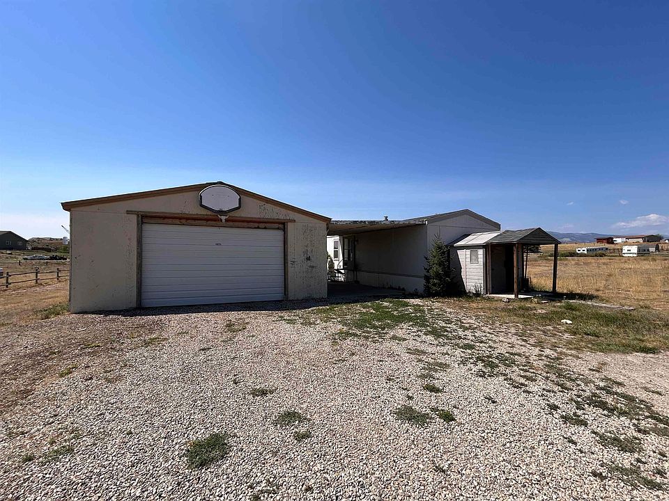 Escape the hustle and bustle with this cozy 3-bedroom, 2-bathroom mobile home on a generous acre of land with views of Rattlesnake Mountain. Located just 5.5 miles from Cody, this property offers country living at a very affordable price. The home boasts an open-concept living area with plenty of natural light, a functional kitchen, and a comfortable master suite with an ensuite bath. Whether you're looking for a peaceful full-time residence, a summer getaway, or a hobby farm, this property offers endless possibilities. With two additional bedrooms and another full bath as well as a nice sized laundry room there is space for everything and everyone. Enjoy the outdoors with plenty of space for gardening, animals, or recreational activities. The large two car garage has a workbench and room for storage, as well. Septic, Northwest Rural Water, and electricity are already in place. Embrace country living at its finest while still being close to Cody’s amenities. This is a great opportunity—schedule your showing today!