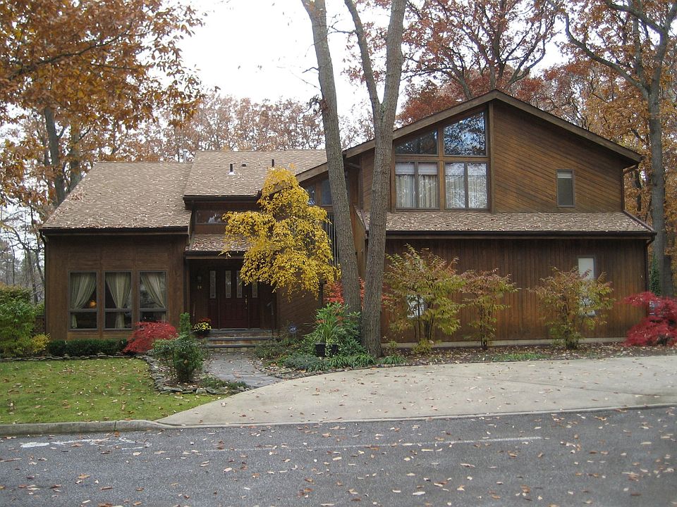 Here is an AWESOME contemporary home in a FABULOUS location that you will just fall in love with! Imagine seeing almost nothing but woods from every natural wood framed window that lets all the wonderful light into the home! The kitchen is enormous with a big center island with range, ceramic floors, new appliances, corian countertops and wood cabinets. A big breakfast room opens out to a two level deck with a fabulous hot tub with nothing but the woods behind you! The family room has vaulted ceilngs, wood floors and a beautiful stone fireplace! The detailing of the new ceramic floors in the foyer and the dining room is wonderful. Upstairs you will find a terrific master suite with lots of windows, vaulted ceilings, a great dressing room and a beautiful bath with separate shower and jacuzzi. This is truly a wonderful retreat. The two remaining bedrooms are BIG with wonderful views of the yard. This home sits at the end of very quiet street in an area with a lake and many beautiful and very expensive homes.