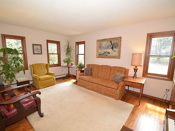 Looking for a country getaway yet be minutes to Amherst/UMass & 10 minutes to I-91? Come see this lovingly maintained colonial on 2.5 acres. From your backyard, you can access a series of wonderful walking/hiking/jogging trails. Home offers an open floor plan with eat-in kitchen/family room w/fireplace which opens onto a screened porch overlooking the well landscaped yard with garden plot & brick patio. First floor also sports the generous living & inviting dining room, home office, mudroom, laundry room w/shower and separate 1/2 bath. Upstairs there is a master suite w/bath, three additional bedrooms and another full bath. A large bonus room above the garage has been used as a home office but you can bring your imagination. Finished rooms in the basement offer more get away spaces for playroom/exercise room.Amenities include: Cambria quartz counters in kitchen, hardwood floors, 4 zone heat. Leverett is a friendly Town with excellent school & plenty of conserved open land.