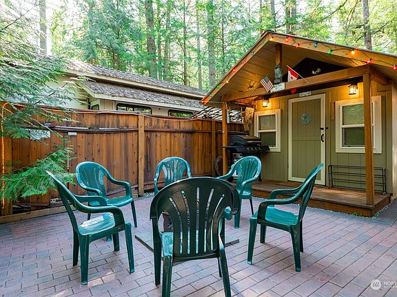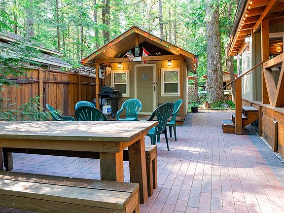 This newer, turn-key, and impeccably maintained park model offers vaulted ceilings, full kitchen, 1 bedroom, 1 full bath, a charming sleeping porch with beautiful built-in bunks and lots of room for outdoor living. With a cozy sitting area on the covered porch as well as an outdoor dining area and fire pit on the patio, this home is ideal for larger groups. The detached shed has power and offers lots of storage or convert it to a bunkhouse! Enjoy all of the extensive amenities that The Glen at Maple Falls has to offer plus close proximity to the Comfort Station means easy access to laundry and additional showers and restrooms! Close to Mount Baker and also a short drive to Bellingham. The Canadian border is less than half an hour away.