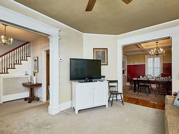 Well-loved & spacious Colonial with easy access to Roslindale Village & transportation. Incredibly energy efficient home with solar panels and mini splits creating no net cost for gas and electricity. Enter the welcoming, sun-filled front entry. You'll immediately find authentic period details and finishes that make this home special: high ceilings, hardwood floors. Large dining room with period hutch, plate rail & elegant coffered ceiling. Living room with custom plantation shutters. Eat-in kitchen has large pantry, half bath and leads to a colorful mudroom. There's more. Second floor has three bedrooms & full bath plus another room leading to a porch. 3rd floor is not included in the square footage but houses a guest room and storage. Finished room in basement could be playroom or office. Blown-in insulation and replacement windows add to the efficiency. Fully fenced yard is great for entertaining with a stone patio and grape arbor. Fantastic 4 bay garage with art studio and parking.