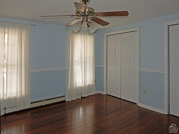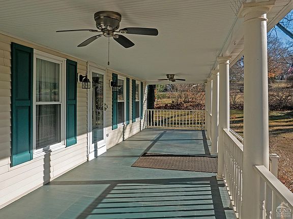 Enjoy living in this three- or four-bedroom, two-bath Cape, situated midway on Orchard Grove Lane, a secluded, safe, cul-de-sac community with lovely mature oak and maple trees, spacious lots, Catskill views, and muted traffic. This 1992 house has been well maintained and it's in a great neighborhood. The first-floor front door leads to the living room, dining room (could also be a bedroom), bedroom, bathroom, and kitchen. Updated kitchen has granite counters, stainless appliances, and glass sliding doors opening to a deck, stone patio, perennial gardens, a huge hydrangea, and charming tall woodlands, while the long front covered porch overlooks the tree-lined street. Upstairs there is a large primary bedroom with attached den and walk-in closet with built-ins; a roomy updated glass and marble bathroom; second bedroom, third bedroom or office; and a laundry closet. The detached oversized two-car garage was built allowing the former basement garage to be finished as open living and play areas. Home is heated by hot water baseboard and has heat-pump mini-splits for air conditioning and alternative heat. Located on the outskirts of the historic Hamlet of Claverack, the property is only ten minutes to lively Hudson and two hours to NYC by car or Amtrak.
