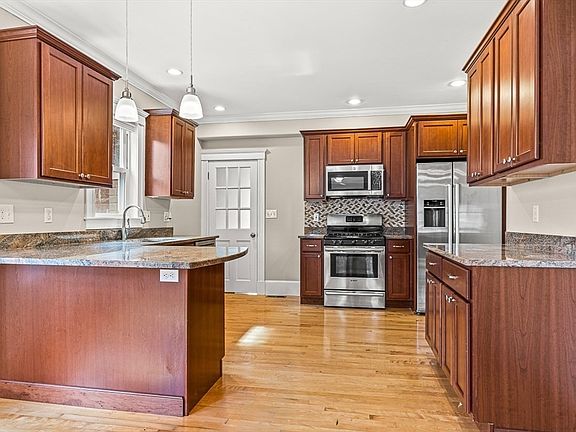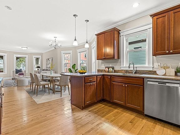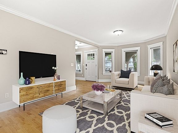 Located on a beautiful treelined street, this elegant first-floor condo is just a short stroll to Davis Square & Tufts. Restored Victorian exterior is graced with a charming front porch inviting you into a classic 2 bed & 2 full baths open layout unit. The amply sized kitchen features granite countertop, stainless steel appliances, and generous storage & cabinetry. The connecting dining and living areas offer excellent space for living and entertaining, and extra alcove adds a convenient spot for home office. Primary bedroom accommodated a king-sized bed, with ensuite full bath w/ glass shower, served by a well-sized closet. Second bedroom is equally spacious and is flanked by the guest bath with a full-tub. New A/C condenser, 2 Car Off-street Parking (tandem with other unit), private basement Washer and Dryer, and a “shared” patio that’s convenient for daily use. Live effortlessly in this well-crafted space, blending modern luxury with timeless charm in an unbeatable location.