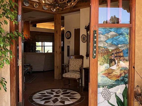 Custom-built rammed-earth 3BD/3BA/2CG home with a 1BD/1BA 400 SF guest house just under 5 acres. This gorgeous mountain property near the Gila National Forest is surrounded by expansive views with Pinon and Ponderosa pines. UNBELIEVABLE VIEWS from 6700' elevation! The wrap-around covered patios overlook Silver City and all the local/historic landmarks--from the Kneeling Nun and Cooke's Peak to the east, across the desert south to the Florida mountains and clear to the Mexican border! The home features cathedral ceilings with locally sourced vigas, energy efficient 18" thick rammed-earth walls, solid-colored concrete floors with radiant heat (4 zones, 6 controls), zoned heat pumps, passive solar heat, and extra-deep window sills throughout. The serene enclosed courtyard is flanked by a separate guest suite/casita with a 3/4 bath and kitchenette. 672 SF 2-car garage PLUS workshop! At least half of the acreage is fenced and includes a dog pen and greenhouse. Also, a storage shed, 2-car carport, and fenced raised bed garden.