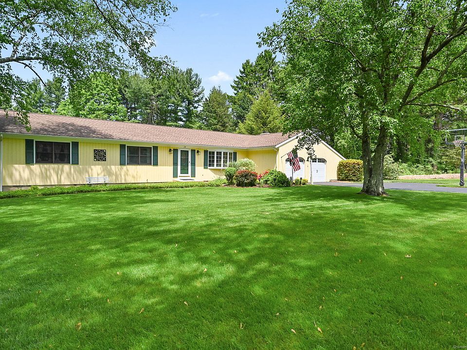 Welcome to 24 Oxen Hill Rd, located in the prestigious Daniels Farm School district. This property sits on over an acre of picturesque, park-like grounds. The spacious ranch-style home provides more than 3,100 sqft for living and entertainment. The main level covers 2,160 sqft, w/ an additional 624 sqft in the finished basement and 336 sqft in a sunroom with vaulted ceilings. Perfect for hosting, the house boasts an expansive back deck and an inviting in-ground pool, along with ample backyard space. The primary bedroom suite is a luxurious haven, featuring cathedral ceilings, a spa-like private bathroom with a whirlpool tub, a double vanity, a frameless glass shower, and elegant tile work. French doors open to a private balcony, offering a tranquil retreat within your own home. The open kitchen-to-family room layout, with vaulted ceilings and abundant natural light, ensures comfortable and opulent daily living. Significant upgrades have been made over the years, including a new roof ('14), two beautifully remodeled bathrooms ('18 & '19), a top-of-the-line natural gas furnace ('12), interior painting to including kitchen cabinets, ('23), & exterior repainting ('24). The home showcases meticulous attention to detail and quality craftsmanship. City sewer (no assessment) and natural gas. With ample storage space, this property is truly remarkable inside and out. Treasured by the same family for many years, it's now your turn to make this house your home!