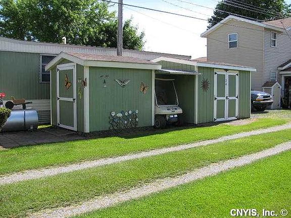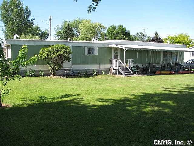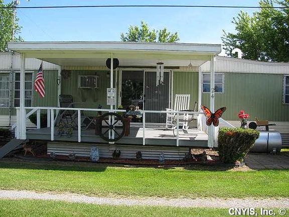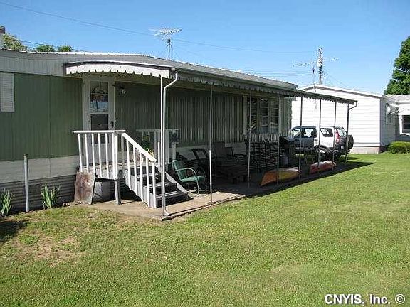 Yr round home/Camp, 85' Waterfront on N Sandy Pond, huge boats/small boats can dock, no wake, lots of space, Lake Ontario w/in minutes, Mrs. Clean lives here & has meticulouly maintained this singlewide, 2 bdrms, 1 ba, newer steel roof, newer laminate floors in dining, kitchen, & hall, newer living room carpet, newer water pump, newer glasstop elec range, newer A/C Units, Furnace (forced-air kerosene) original but hardly used only in fall, owner says runs beautifully, 2 generous sized sheds w/elec, all on prime waterfront lot. Yes, only $134,900. HURRY!! YOU WILL MISS THIS GEM!!
