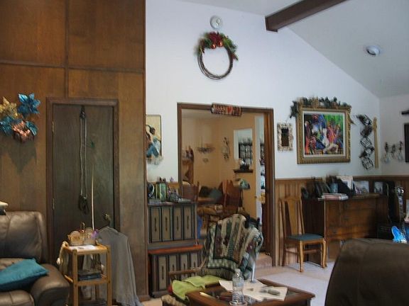 Well maintained home, edge of town on 6ac m/l. Awesome newer 3 car garage w/exterior entrance to huge attic area, could be finished for additional living space. House has extra large living room w/ beams in vaulted ceiling. new H/AC unit. All appliances stay. 3 bedroom, 2 bath, 2 dining, sun room, laundry room, exterior deck & new storage shed w/porch. Own your own Park!