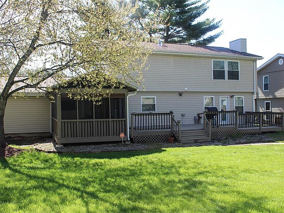 This charming two story home offers plenty of space for huge growing family with over 3,000sq ft in living space. Home features include 4 Bedrooms, with 2.5 Baths, 2 Car Garage with double parking pad. Foyer with wrought iron staircase. Master Bedroom Suite with jet tub and large sit down shower seat. All bedrooms are spacious in size. Fourth bedroom used as walk in closet, could be easily converted. Extra room in lower level. Main floor includes Sitting room, formal Dining room, Family room with dry bar, gas fireplace, exit door to deck. Kitchen includes dining, double ovens, island, plenty of cabinetry, double sink & gas cooktop. Main floor laundry on main level. As a bonus enclosed screen porch which leads to two tier deck, large leveled fenced backyard to common ground/park, firepit at back. Basement is finished for more entertaining w/additional family area. Hair salon in basement used by owners.