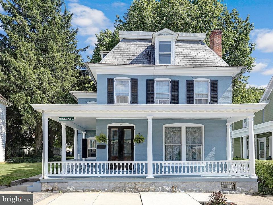 Charming 2 story home built in 1858 within desirable Newville Borough. Enjoy summer nights on the wrap around front porch. This home features the original hardwood flors throughout. The over-sized rooms are spacious and add to the charm of the home. Finished third floor bonus room. Second floor master bedroom is plumbed and rough framed for an additional full bathroom. Shaded backyard with brick patio is great for entertaining. Detached 2 car garage at rear with alley access. Pellet stove and window A/C units do not convey.