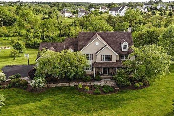 Welcome to your STAYCATION home! This impressive two story, four-bedroom colonial features an optional first floor bedroom and a first-floor full bathroom, with an upstairs laundry room. The kitchen features maple cabinets, SS appliances, copper farmer's sink, and Spanish tile flooring. The master suite has a tray ceiling, a sitting office area and laundry room with wood flooring. The finished walkout basement features a home theater, custom made bar, gaming area, powder room and kitchen area adding 1, 100 sq ft. of living space. The backyard features a cement in-ground pool w Pennsylvania blue stone patio, wooded fencing professional landscaped and wooded, offering privacy. The home also features smart home technology, a wood burning fireplace in family room, and a front porch.