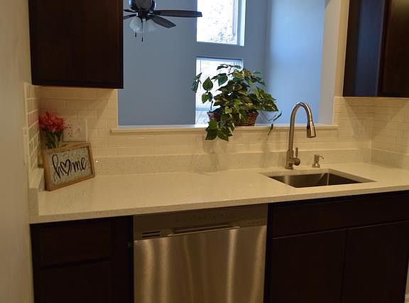NEW! NEW! NEW! This 1st floor, end unit ranch has been completely remodeled and updated! Light & bright with 2 story LR & formal dining room or eat in area. New maple cabinets with quartz countertops, subway tile backsplash & new hi end appliances! French doors to master bedroom offers walk in closet. Bathroom has also been updated with new cabinets & quartz counters also, double sink vanity, separate shower & soaking tub. New fixtures, faucets, blinds & ceiling fans. New LVT flooring t/o! And freshly painted! Laundry/mud room w/new washer & dryer. Newer HWH. Large, front walk in closet for extra storage. 2 car garage is finished also! Cul-de-sac location. Nothing to do but move in to this gorgeous home!